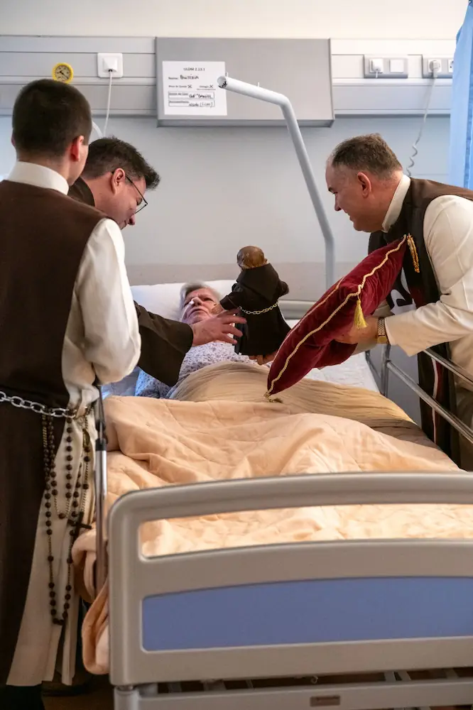 La visita tuvo lugar por la tarde. Acompañados por fray Marcio, OFM, los Heraldos del Evangelio visitaron las habitaciones de los residentes para darles la oportunidad de tocar al Niño Jesús. También para tener un momento de intimidad y oración con nuestro dulce Salvador.