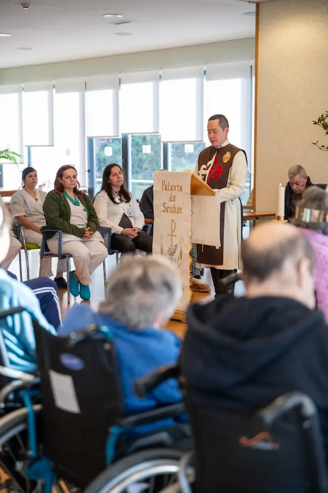 Tras las visitas, se celebró una Santa Misa con los residentes y el personal. Al final, todos recibieron una bendición especial del Niño Jesús.